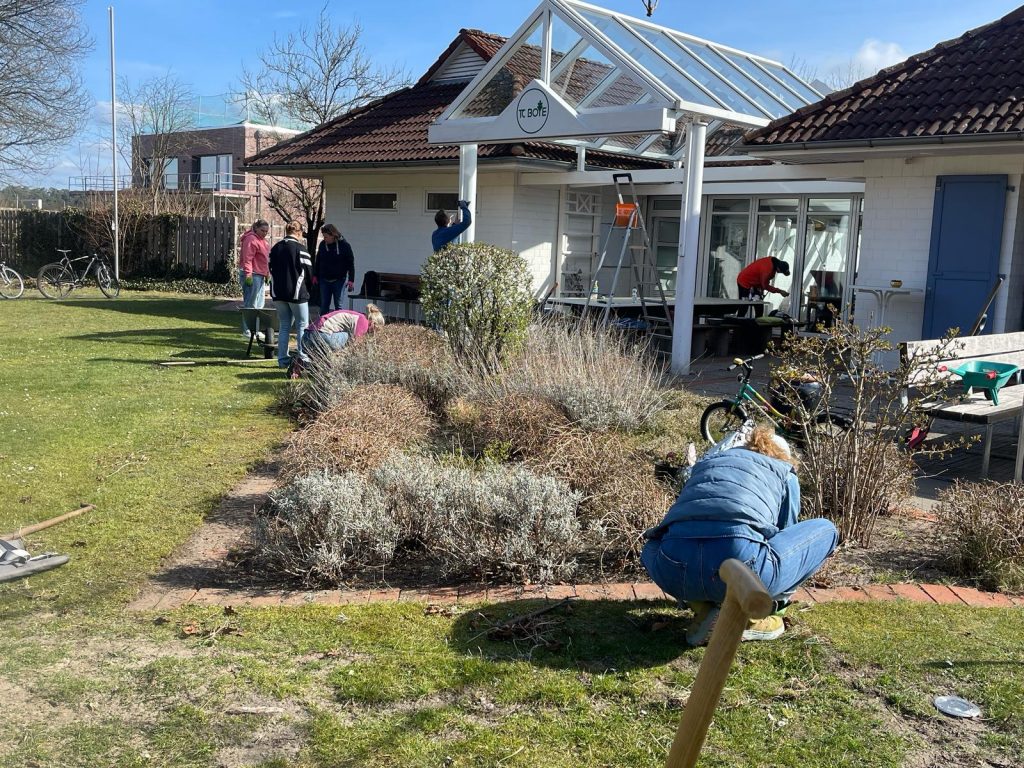 Der diesjährige Frühjahrsputz beim TC Boye lockte fast 30 engagierte und gut gelaunte Mitglieder an. Ob es nun an dem strahlenden Frühlingssamstag lag oder an der tiefen Verbundenheit zu unserem Tennis-Verein – an diesem Tag wurden vielfältige Aufgaben mit vereinten Kräften in Angriff genommen und erfolgreich und zufriedenstellend abgeschlossen 🙂